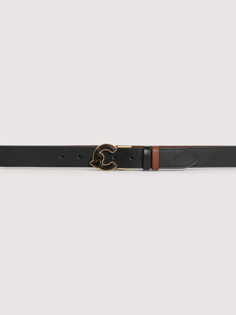 This belt from the C-Me line is enhanced by the logo reimagined with the C of Coccinelle, which knots around and embraces the plectrum, an iconic element of the brand. Its features include a reversible two-tone strap and a tortoiseshell-effect plexiglass C-Me buckle detail, ideal for pairing with any look.