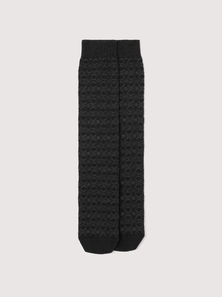 - Knee-high socks with all-over tone-on-tone monogram pattern