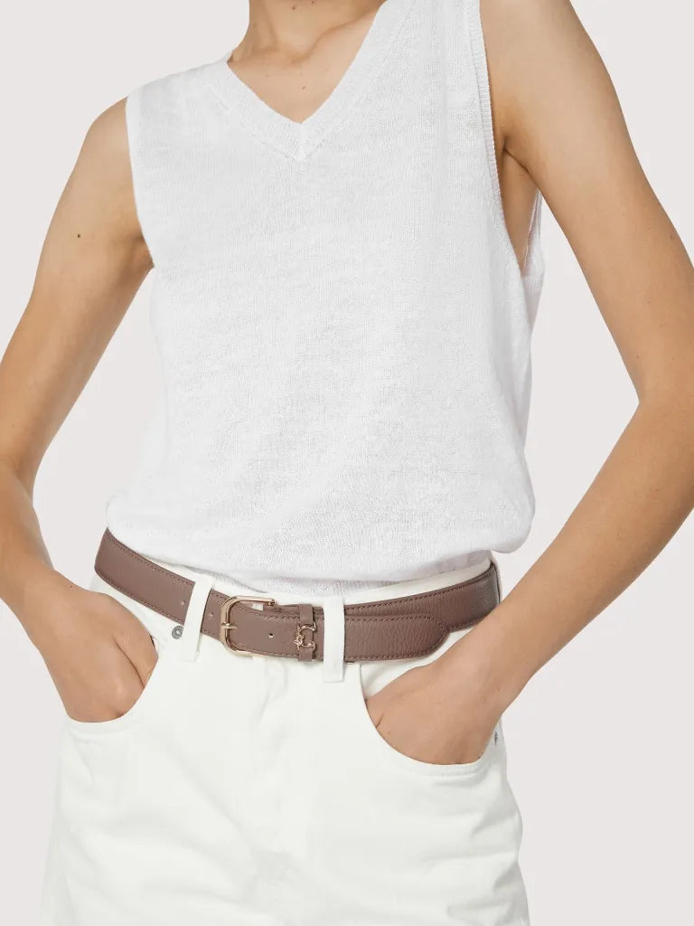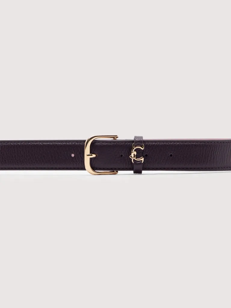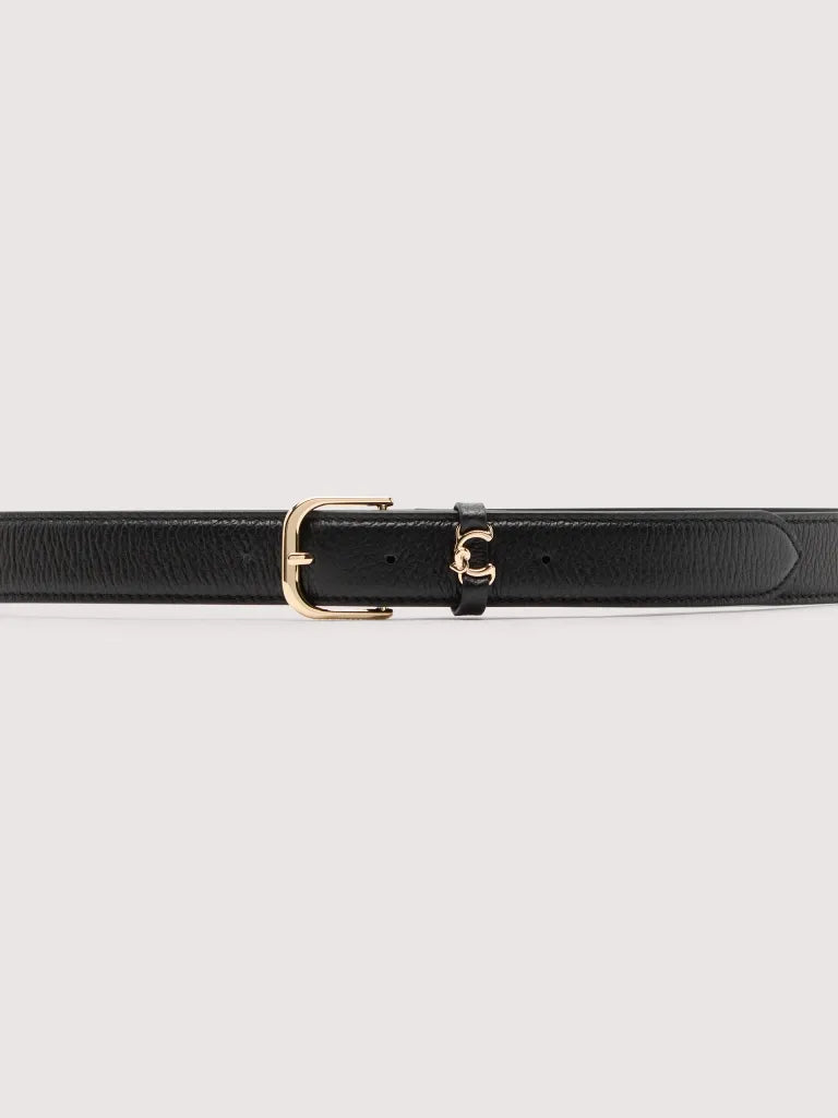This belt from the Coccinelle Metal loop line is enhanced by the loop with the logo reimagined with the C of Coccinelle, which knots around and embraces the plectrum, an iconic element of the brand. Give your look an iconic personality. This model is made with leather processed using specialised machines and then tumbled to maintain its softness. This is a very robust, easy to clean leather, making it ideal for everyday use.