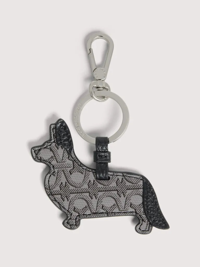 Our monogram design adds a unique touch to the capsule collection for our four-legged friends. Distinctive accessories to bring a touch of originality to every part of your day. An original dog-shaped key ring, perfect for attaching to a leash thanks to the practical carabiner hook. This model is made from polyester fabric, on which a special finish has been applied. The fabric is then passed through a specific cylinder engraved with our monogram pattern.