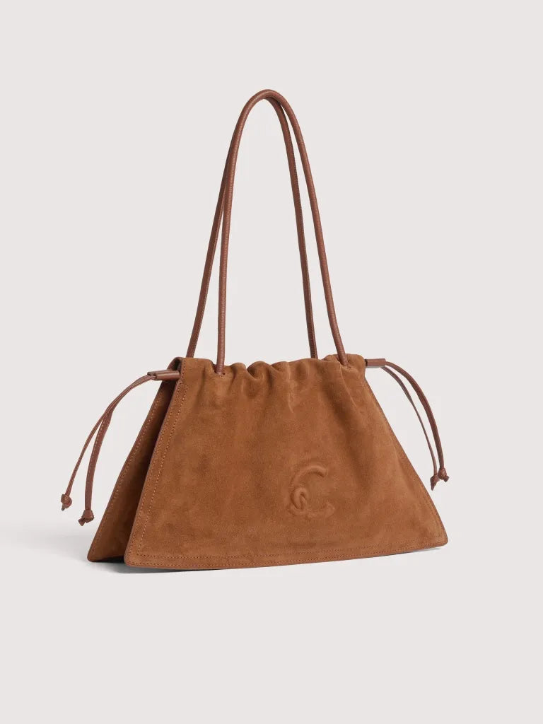 Made from suede, the Coccinelle Dulse line highlights the elegance of the material with its distinctive soft pleats. A leather drawstring gathers the roomy silhouette of these bags, blending spaciousness with an elegant and romantic charm. The line is characterised by the new C-Me logo, created using a unique embossed technique on the leather.