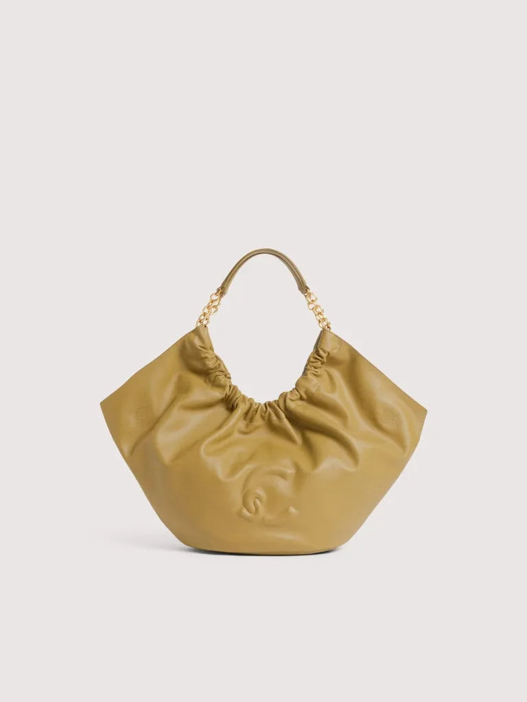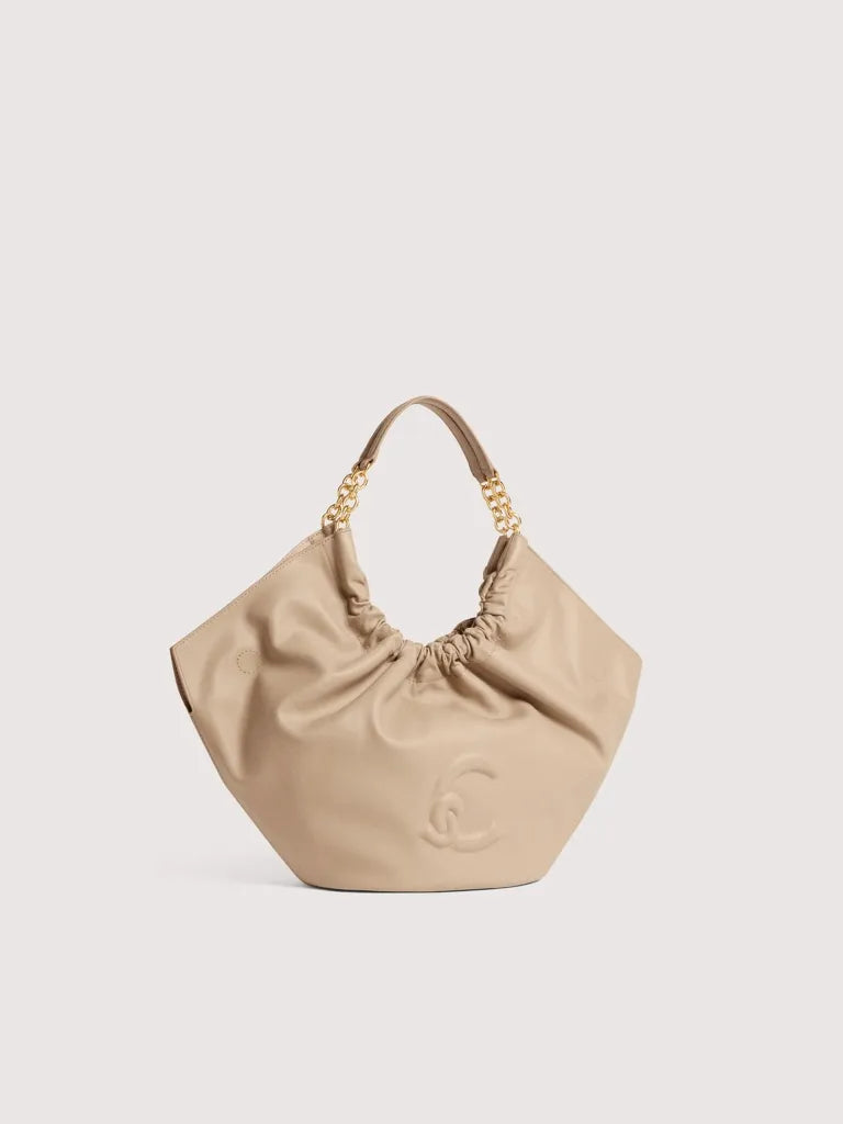 The Coccinelle Smash line embodies the brand’s full contemporary, feminine attitude. The lightweight smooth leather is gathered by the metal chain, creating soft folds that give the line a supple look. The C-Me logo enhances and adds a personal touch to this romantic, spacious bag. For added comfort, a leather shoulder insert has been added to the chain handles. This model is made with smooth leather, tanned with special oils that make it soft to the touch. Despite its silky appearance, the leather is weather-resistant thanks to the use of resins that make the leather slightly waterproof while maintaining its natural appearance.