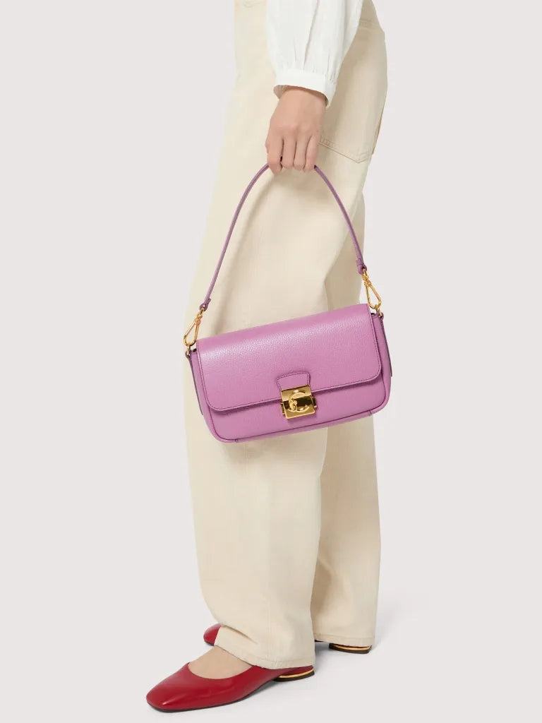 The Coccinelle C-Me Lock line is a sophisticated evolution of the C-Me logo, reimagined as a modern, distinctive closure that underscores its contemporary character. C-Me Lock stands out with a bold yet practical design, ideal for everyday life with a touch of style. This model is made with leather processed using specialised machines and then tumbled to maintain its softness. This is a very robust, easy to clean leather, making it ideal for everyday use.