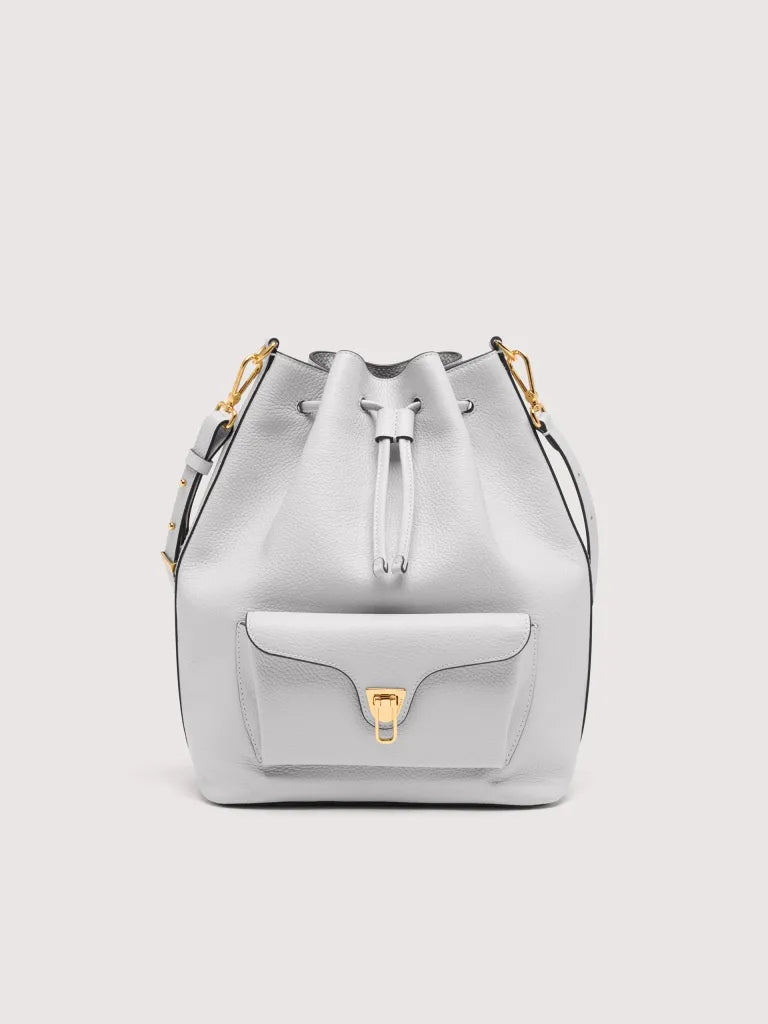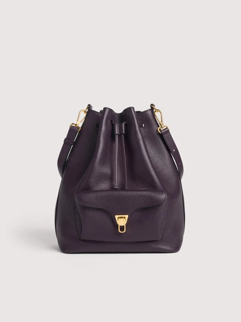 Coccinelle Beat is one of the brand’s iconic lines: the distinctive flap closure with plectrum is the symbol of Coccinelle’s identity, reimagined for this collection with elegant, modern functionality. This maxi bucket bag with leather shoulder strap can be carried in two ways, and is a perfect mix of structure and softness, practicality and contemporary design. This model is made with leather processed using specialised machines and then tumbled to maintain its softness. This is a very robust, easy to clean leather, making it ideal for everyday use.