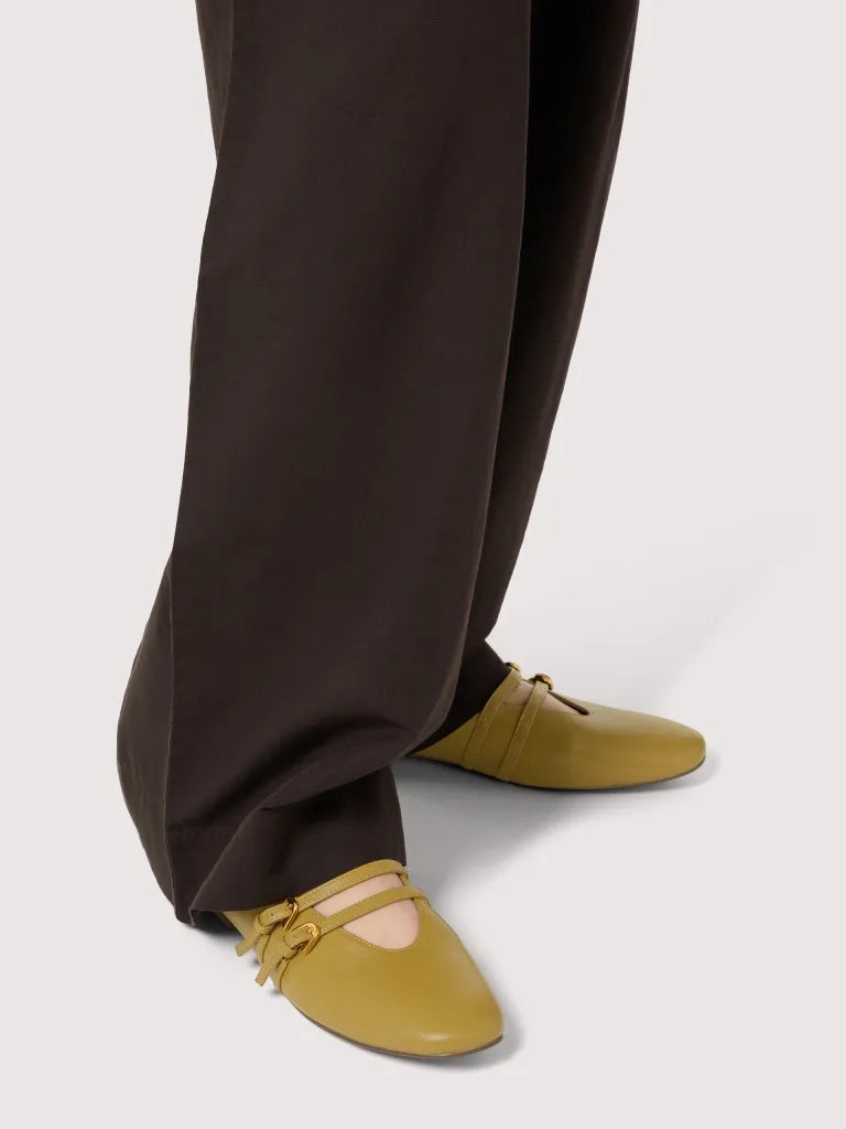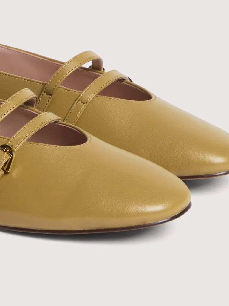 Clean lines and a touch of elegance make the Coccinelle Risako ballet flats truly unique. The double adjustable leather strap with buckle, inspired by the iconic plectrum detail, adds character and distinction to this versatile, feminine style. Complete your look without sacrificing a Coccinelle detail. This model is made with smooth leather, soft to the touch. In order to preserve the beauty of this product, we recommend protecting it from water, oil, grease and alcohol and avoiding prolonged exposure to direct heat sources or adverse weather conditions. In the event of it becoming wet in the rain, we recommend drying the product with a soft, light-coloured cloth.
