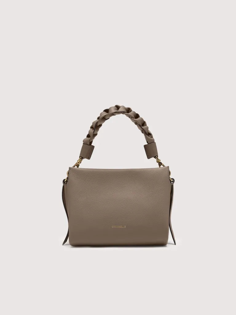 Boheme is a line made of soft two-sided leather and features a plaited handle that makes it feminine and contemporary. A compact bag, but at the same time large enough for you to tote all your essentials with you, making it the ideal bag for the most dynamic of women. This model is made with leather processed using specialised machines and then tumbled for an extremely soft finish. This particular type of leather is finished with pigments on both sides to create a two-sided effect. It is made from a robust material, making it suitable for everyday use.MaterialTwo-sided leather