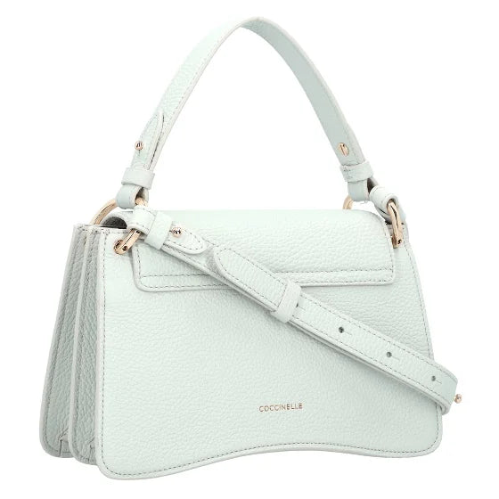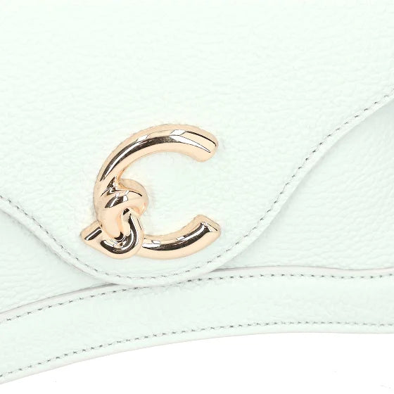 A new signature joins the brand: Coccinelle C-Me. The logo is reimagined with the C from Coccinelle, which knots around and embraces the plectrum - an iconic element of the brand - symbolising the intertwining of a woman’s life between past and present. The geometric lines and elegant curves elevate the design, while the gusseted construction brings a blend of functionality and understated elegance to this bag, intended to be the essential companion for the Coccinelle woman throughout her day. This model is made with leather processed using specialised machines and then tumbled to maintain its softness. This is a very robust, easy to clean leather, making it ideal for everyday use.