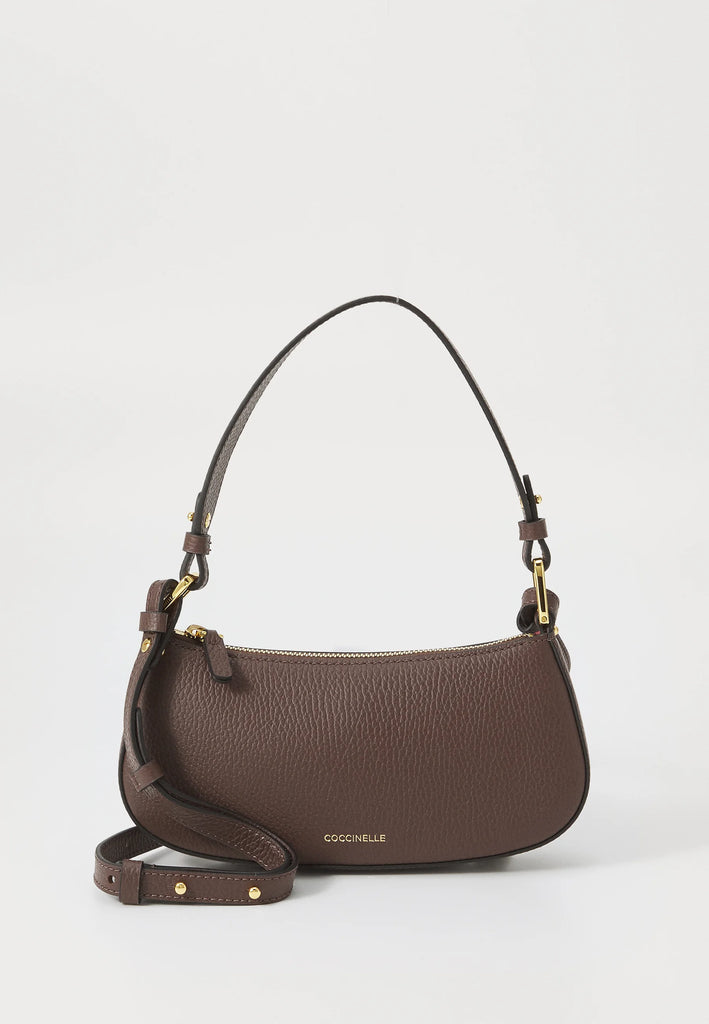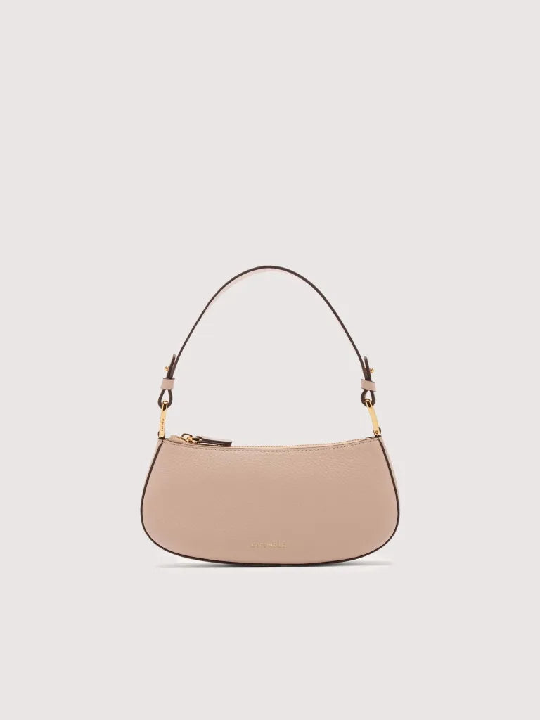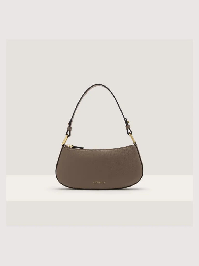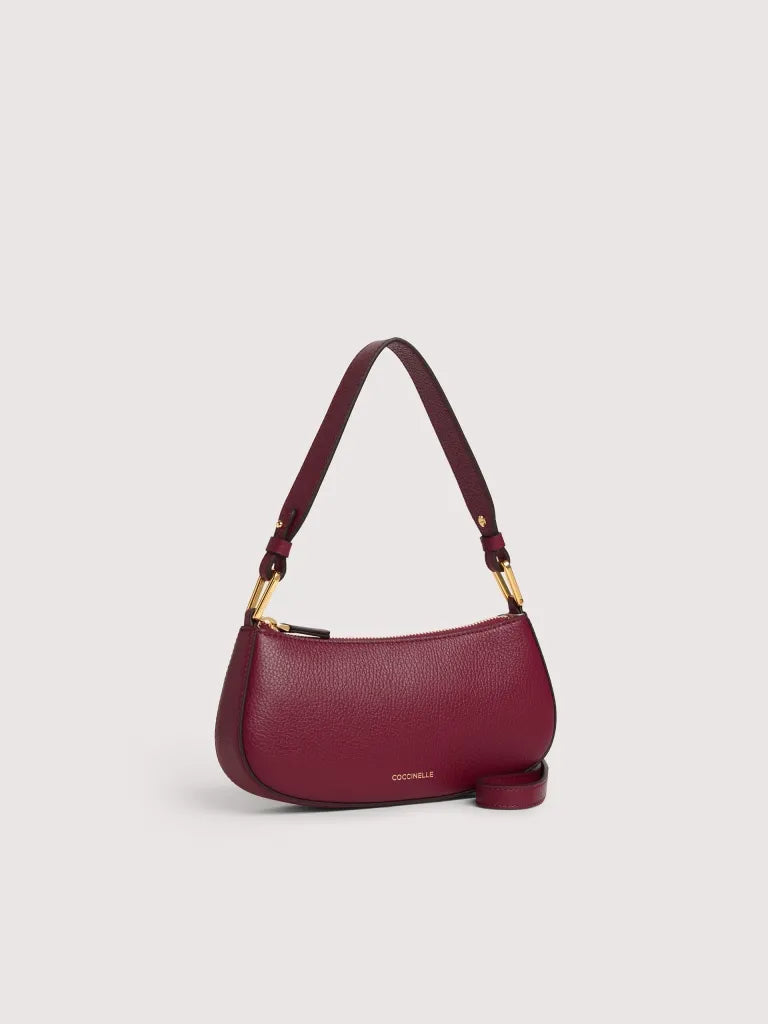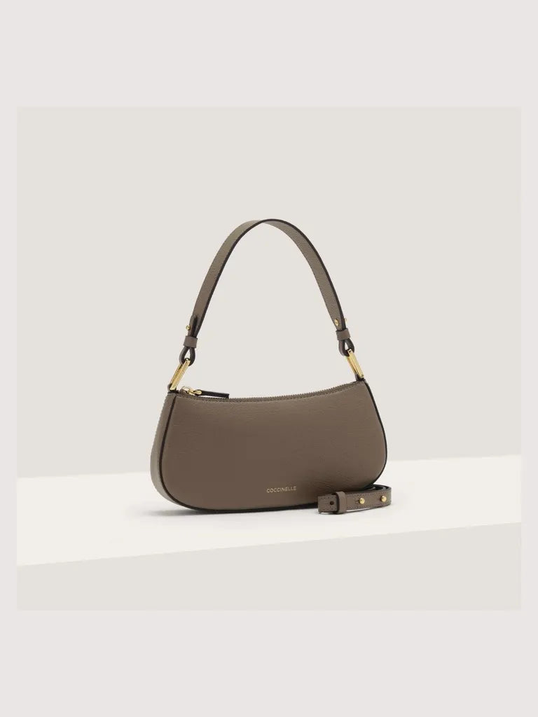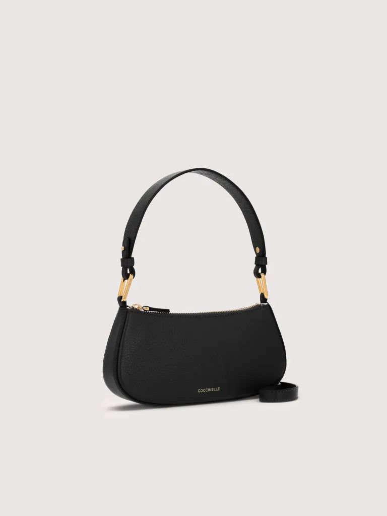 Baguette model with a refined silhouette in an elegant style and contemporary design, enhanced by the metallic detail at the base of the handle.It can be carried on the shoulder but also cross-body thanks to the additional detachable and adjustable shoulder strap. This model is made with leather processed using specialised machines and then tumbled to maintain its softness. This is a very robust, easy to clean leather, making it ideal for everyday use.MaterialGrained leather