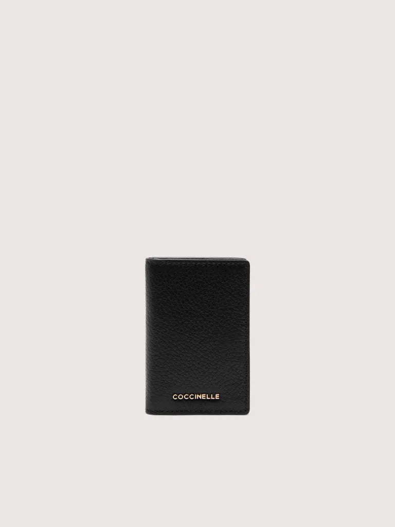 This card holder from the Metallic line is embellished with the metal Coccinelle logo. Small and compact, it is ideal for those who have little space in their bag but don't want to do without an essential item. This model is made with leather processed using specialised machines and then tumbled to maintain its softness. This is a very robust, easy to clean leather, making it ideal for everyday use.