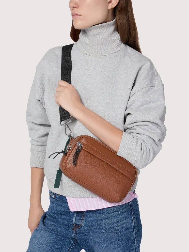 The Smart to go collection is expanded with new accessories to meet every need, a perfect marriage of comfort and functionality. Each bag is also embellished with the personalised leather tag that encapsulates the key elements of this line: practicality and minimalism. This crossbody model is ideal for leisure time, and thanks to the attachments on the back it can also be worn as a waist bag, perfect for keeping your essentials close at hand. The jacquard fabric shoulder strap echoes our signature monogram detail in a tone-on-tone version. This model is made with leather processed using specialised machines and then tumbled to maintain its softness. This is a very robust, easy to clean leather, making it ideal for everyday use.