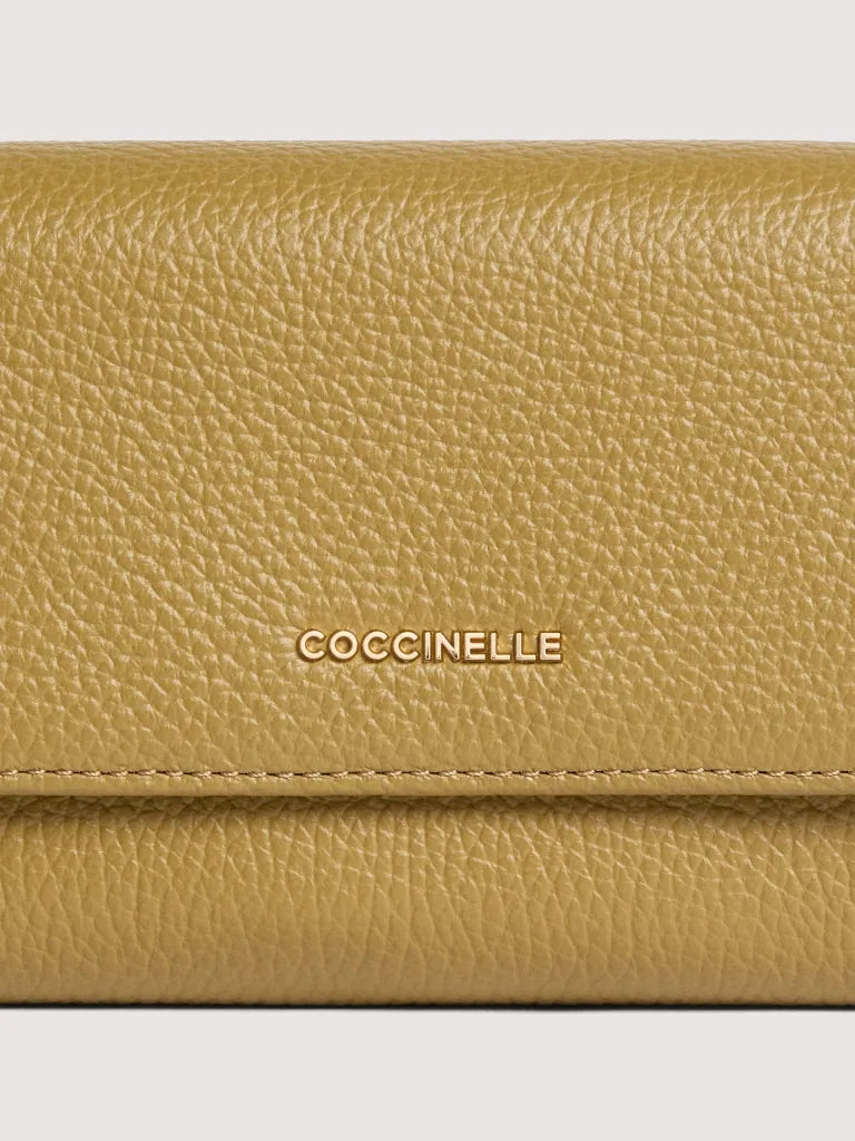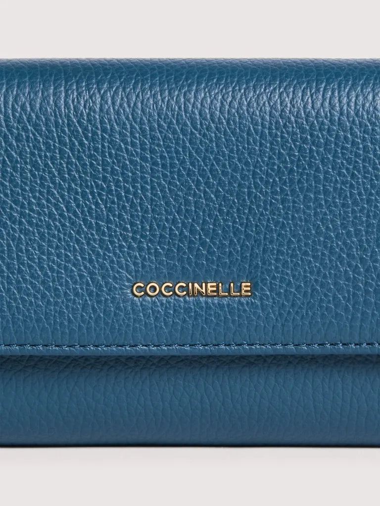 This Metallic flap purse features the metal Coccinelle logo. The extremely functional use of space has been designed to keep your essentials tidy and secure.