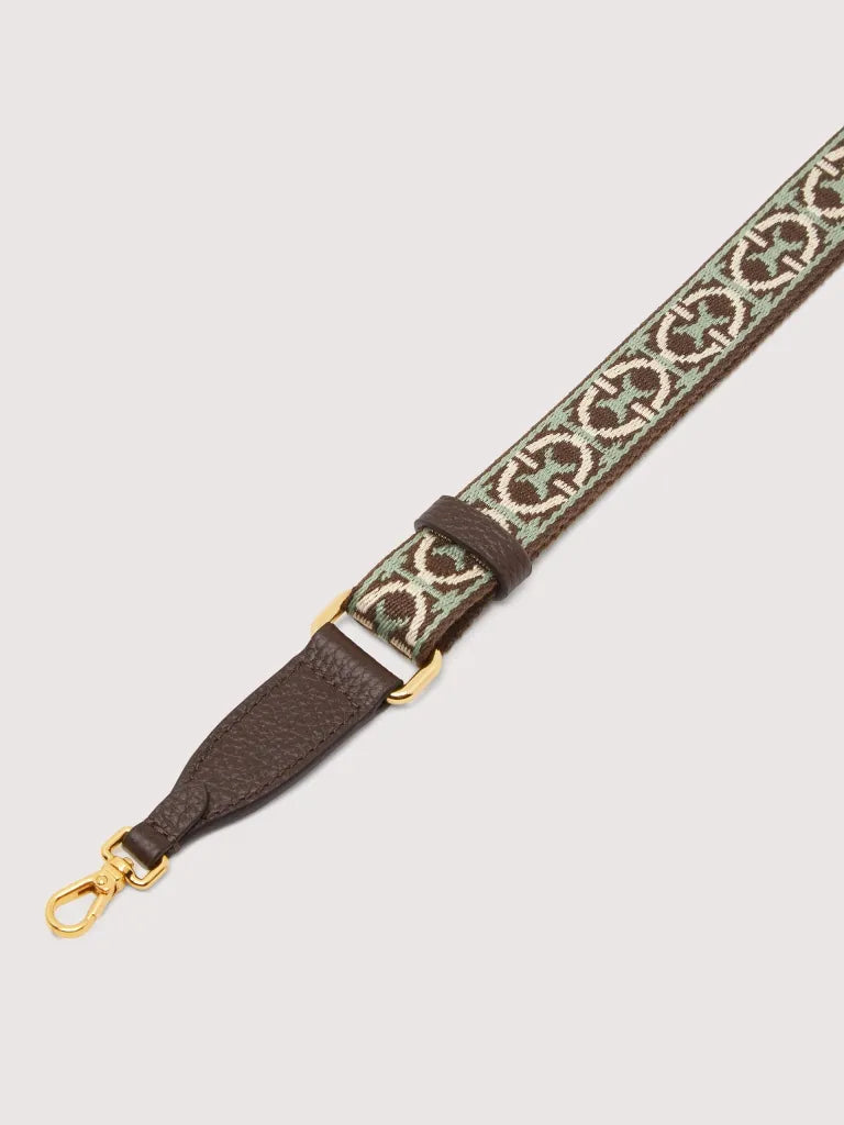 • Adjustable and detachable fabric shoulder strap with jacquard monogram pattern