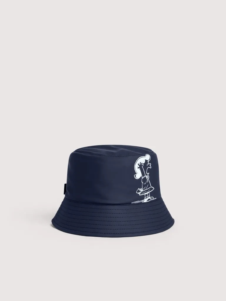 Coccinelle celebrates its special partnership with Peanuts to mark the 75th anniversary of the world’s most iconic and beloved comic strip. A fusion of two creative worlds has given rise to an exclusive accessories collection that combines the sophistication of Italian design with the playful spirit of Peanuts’ timeless characters. This fisherman’s hat completes this special collection by adding a touch of originality and playfulness to any outfit. Lightweight, versatile and minimalist in design. This accessory can be easily folded thanks to the strap and press stud closure, making it ideal for taking with you wherever you go. This model is made from coated fabric, consisting of a woven base using recycled polyester yarn, finished on the outside with a coloured polyurethane coating that makes it waterproof and durable. Recycled polyester gives a second life to non-biodegradable materials. In terms of quality, it is comparable to virgin polyester, but its production requires 59% less energy. This material is also officially GRS certified.