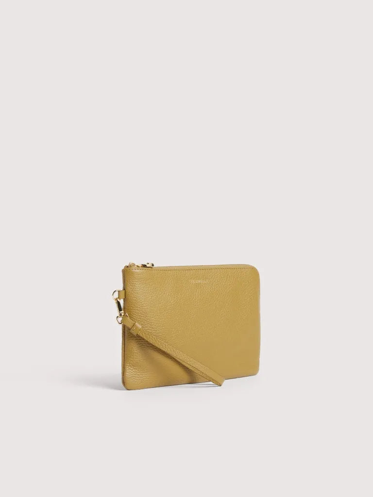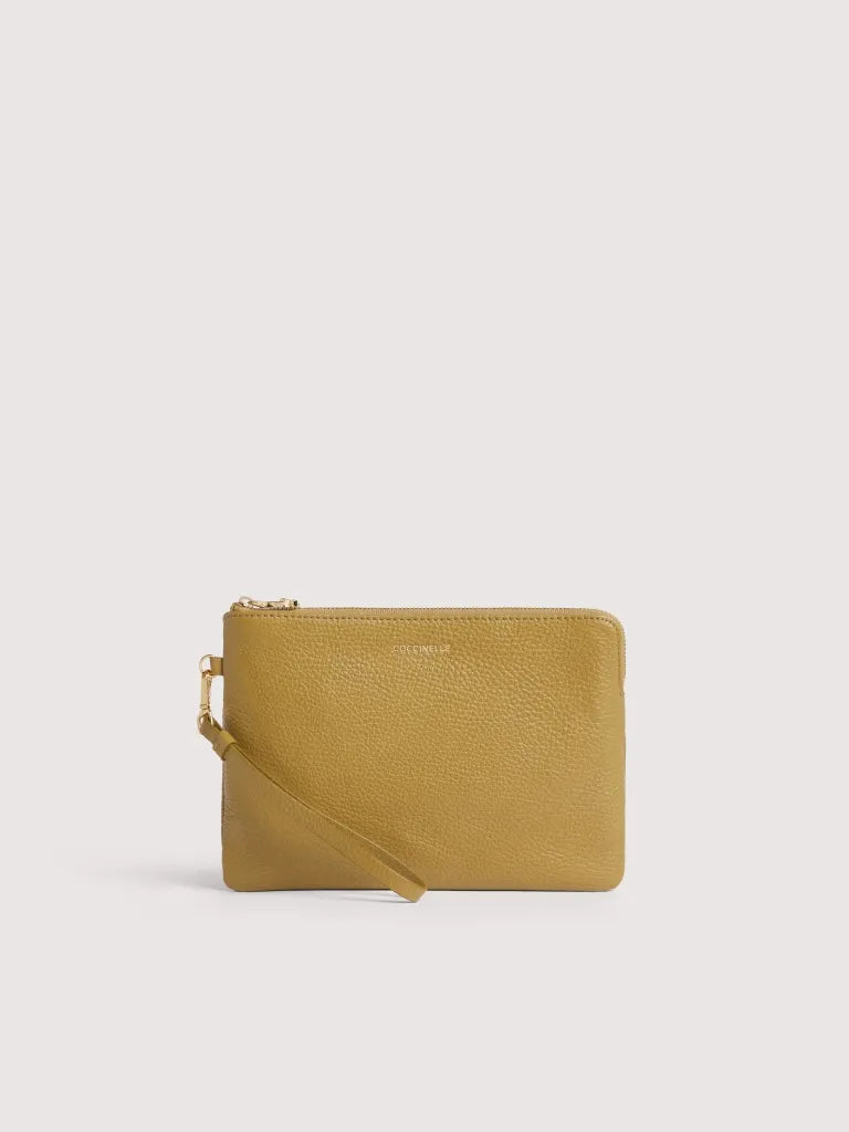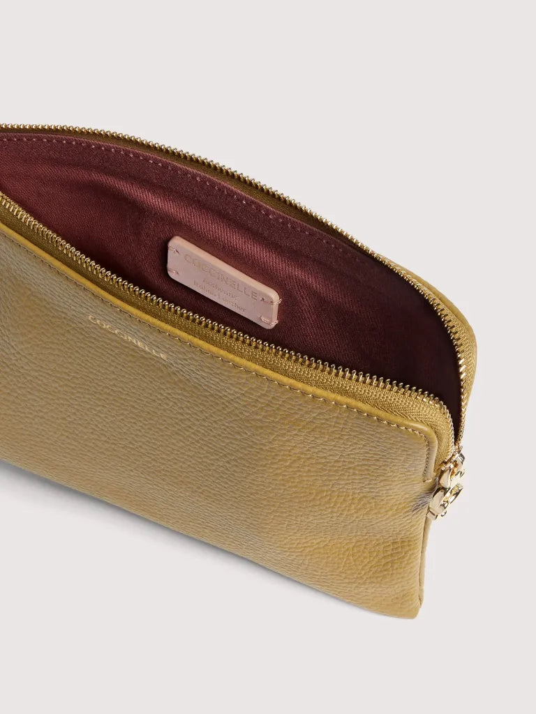 Compact, functional and finely detailed, this pouch from the Coccinelle C-Me Softy line is an essential accessory to carry with you at all times. Perfect for organising your bag with a touch of style, it can also be carried in the hand thanks to the detachable leather wrist strap. The design is enhanced by a refined light-catching zip puller featuring the C-Me logo detail, adding a uniquely elegant touch. This model is made with leather processed using specialised machines and then tumbled to maintain its softness. This is a very robust, easy to clean leather, making it ideal for everyday use.