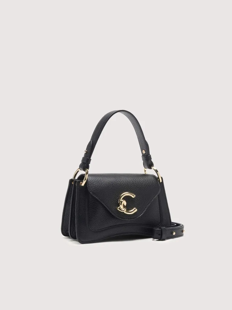 A new signature joins the brand: Coccinelle C-Me. The logo is reimagined with the C from Coccinelle, which knots around and embraces the plectrum - an iconic element of the brand - symbolising the intertwining of a woman’s life between past and present. The geometric lines and elegant curves elevate the design, while the gusseted construction brings a blend of functionality and understated elegance to this bag, intended to be the essential companion for the Coccinelle woman throughout her day. This model is made with leather processed using specialised machines and then tumbled to maintain its softness. This is a very robust, easy to clean leather, making it ideal for everyday use.