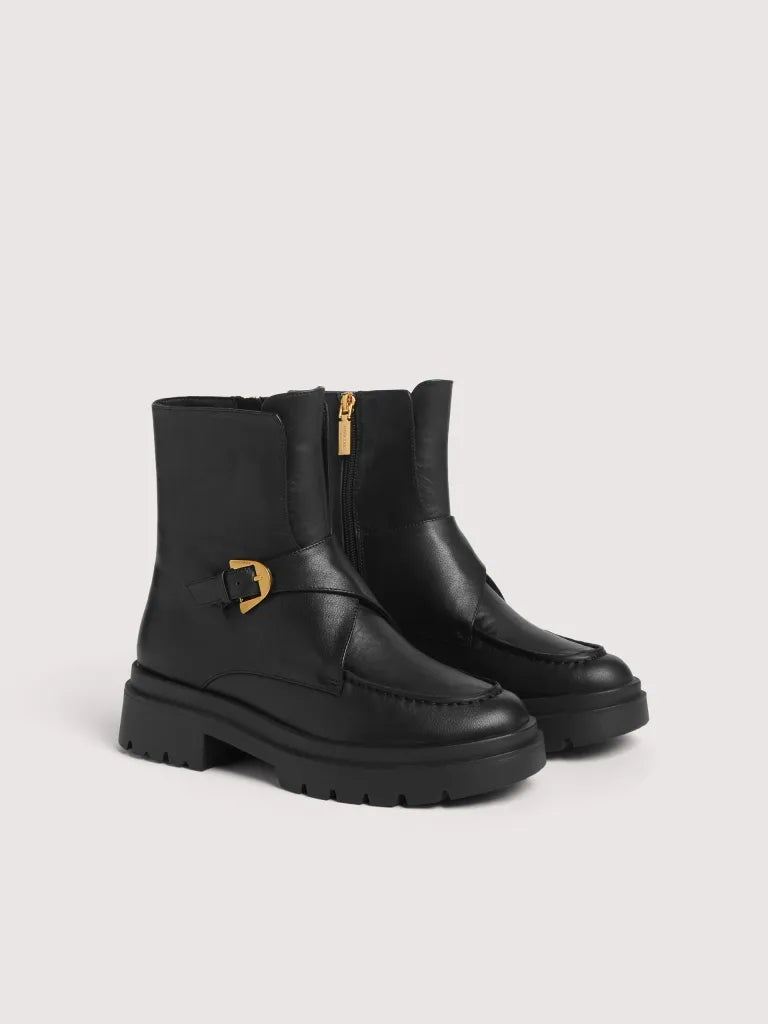 Ankle boots with a minimal, versatile design featuring a topstitch detail on the upper and the plectrum buckle, an iconic yet functional element that allows for easy adjustment. Complete your look while staying true to a Coccinelle model. This model is made with soft to the touch leather. In order to preserve the beauty of this product, we recommend protecting it from water, oil, grease and alcohol and avoiding prolonged exposure to direct heat sources or adverse weather conditions. In the event of it becoming wet in the rain, we recommend drying the product with a soft, light-coloured cloth.