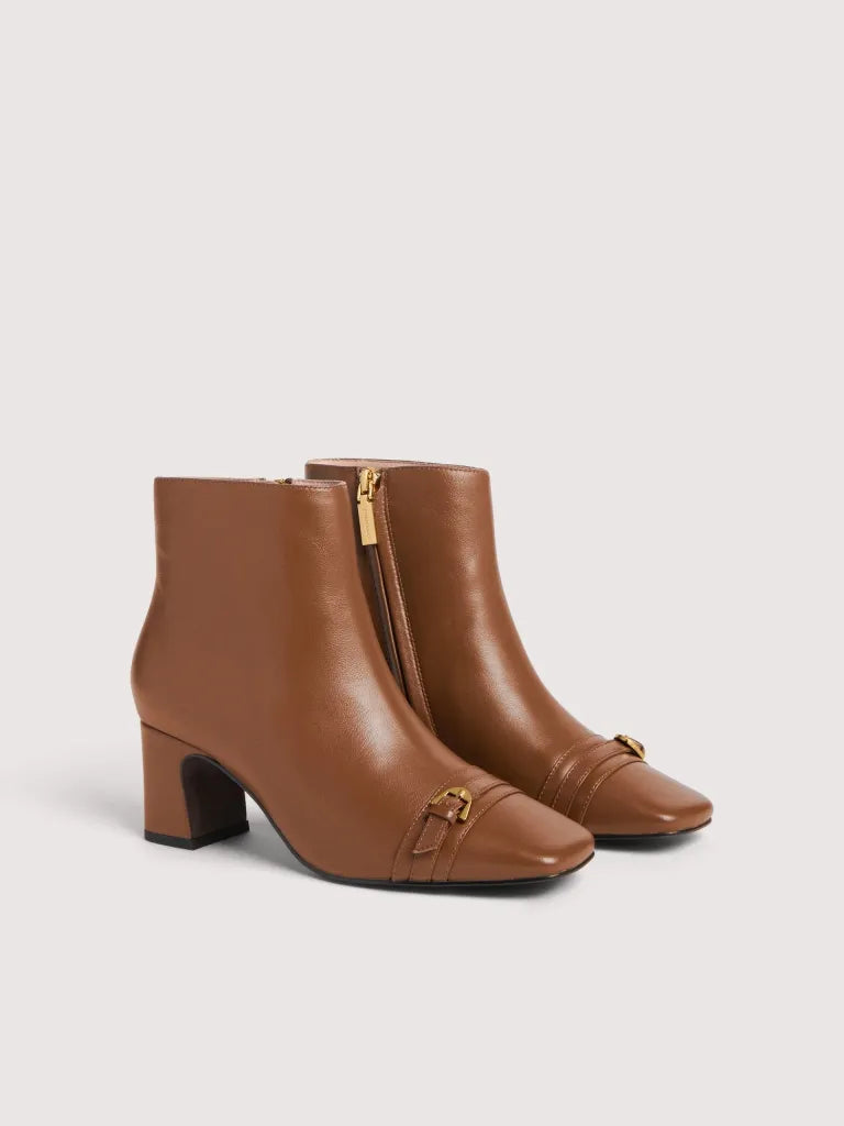 These boots from the Coccinelle Nadja line feature a refined, elegant silhouette, enhanced by the strap with plectrum-shaped buckle, an exclusive detail found across the brand’s collections. Complete your look without sacrificing a Coccinelle accessory. This model is made with smooth leather, soft to the touch. In order to preserve the beauty of this product, we recommend protecting it from water, oil, grease and alcohol and avoiding prolonged exposure to direct heat sources or adverse weather conditions. In the event of it becoming wet in the rain, we recommend drying the product with a soft, light-coloured cloth.