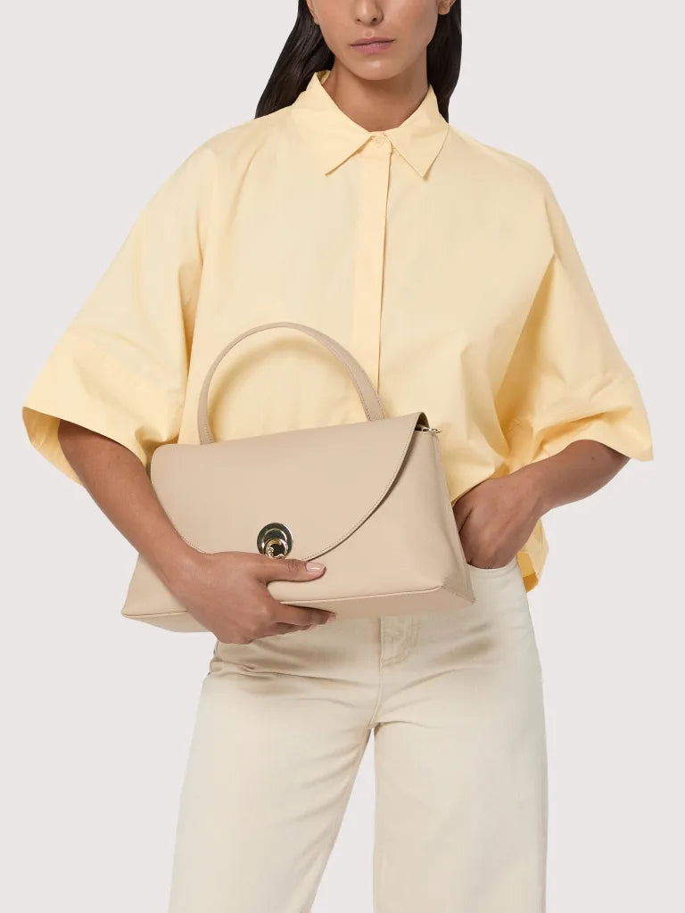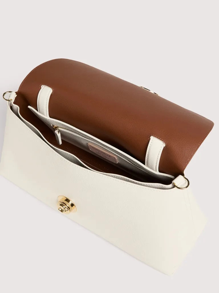 For the Coccinelle Nikla line, the C-Me logo becomes a refined turn lock that elegantly finishes off this bag with a flap. Sophisticated and modern, each design blends timeless elegance with a contemporary silhouette, accentuated by the leather’s softness. The bag features a spacious interior and a rear pocket, and is constructed from two-sided leather. This model is made with leather processed using specialised machines and then tumbled for an extremely soft finish. This particular type of leather is finished with pigments on both sides to create a two-sided effect. It is made from a robust material, making it suitable for everyday use.