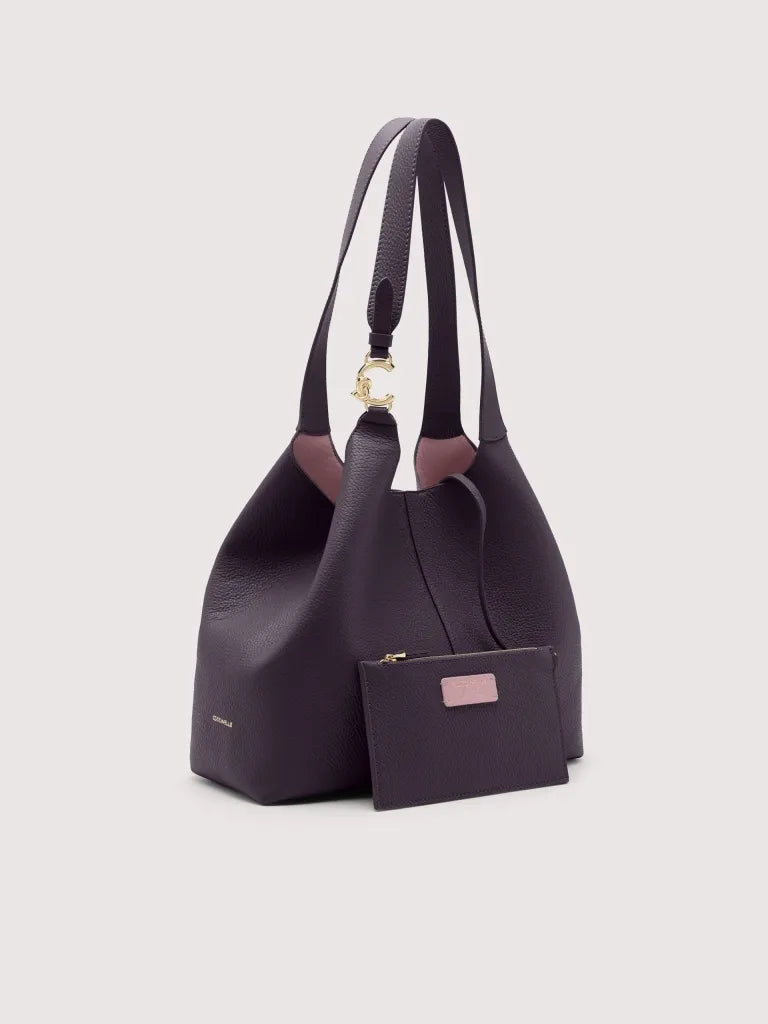 Coccinelle C-Easy is a tote bag featuring sinuous curves that highlight the beauty of the leather. Functionality is expressed by the capacity and the inner pouch, but the core of the design lies in the fastening, which can be done either centrally via a magnet, leaving the sides open, or by folding the sides through the lace and button stud closure. There is no lack of a metallic element in the handle with the new C-Me logo, which brightens up this bag with its extremely versatile soul. This model is made with leather processed using specialised machines and then tumbled to maintain its softness. This is a very robust, easy to clean leather, making it ideal for everyday use.