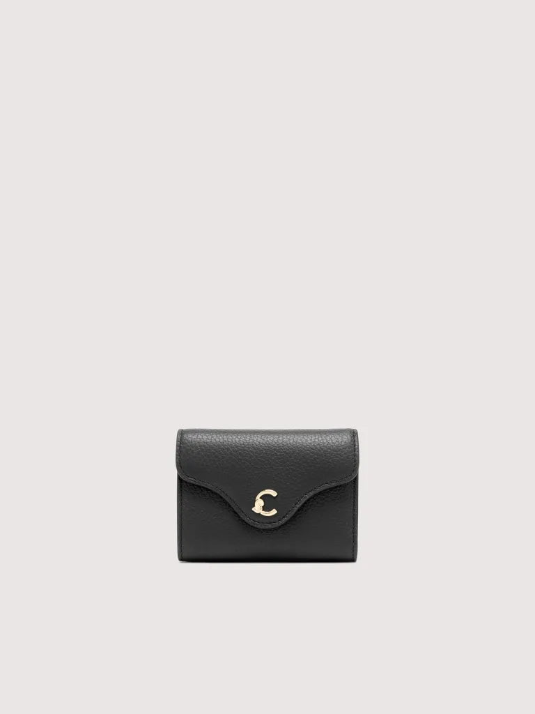 This wallet with a flap from the C-Me line is enhanced by the logo reimagined with the C of Coccinelle, which knots around and embraces the plectrum, an iconic element of the brand. Its space is well organised for storing your essentials neatly and carefully. This model is made with leather processed using specialised machines and then tumbled to maintain its softness. This is a very robust, easy to clean leather, making it ideal for everyday use.