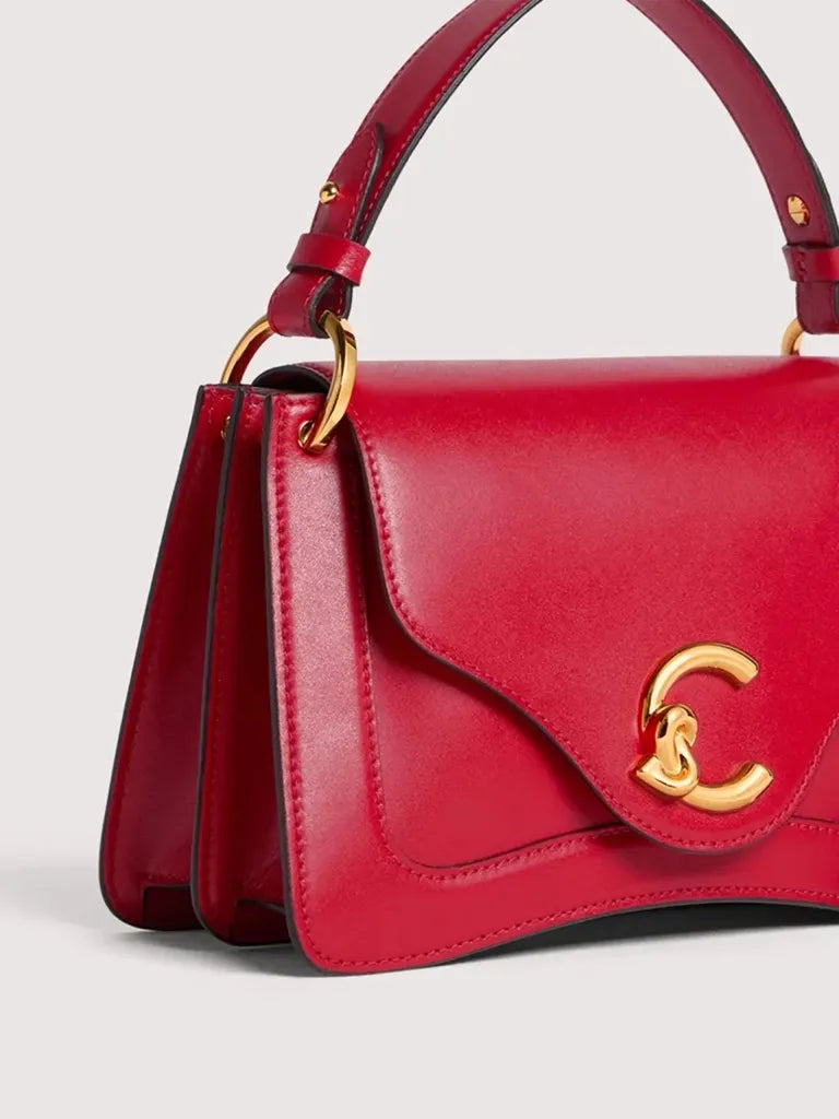 A new signature joins the brand: Coccinelle C-Me. The logo is reimagined with the C from Coccinelle, which knots around and embraces the plectrum - an iconic element of the brand - symbolising the intertwining of a woman’s life between past and present. The geometric lines and elegant curves elevate the design, while the gusseted construction brings a blend of functionality and understated elegance to this bag, intended to be the essential companion for the Coccinelle woman throughout her day. This model is made with smooth leather, tanned with special oils to give it a durable and refined appearance.