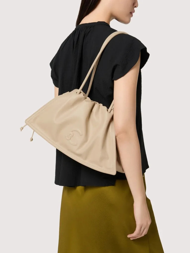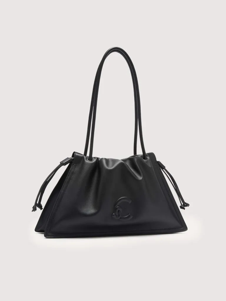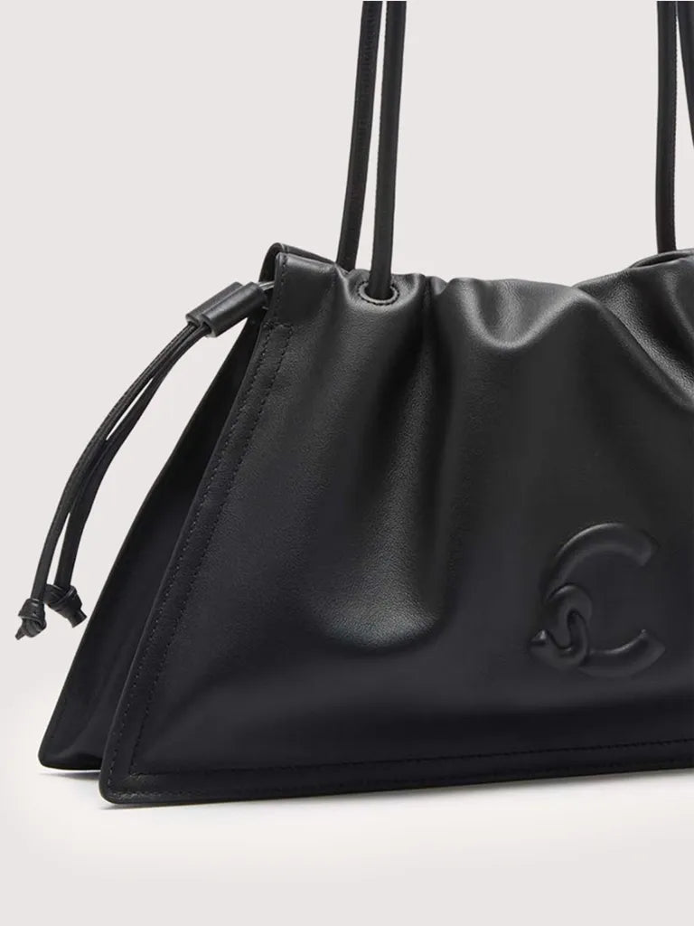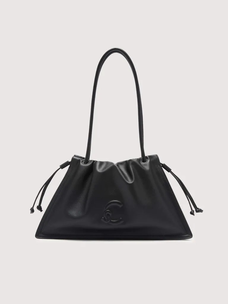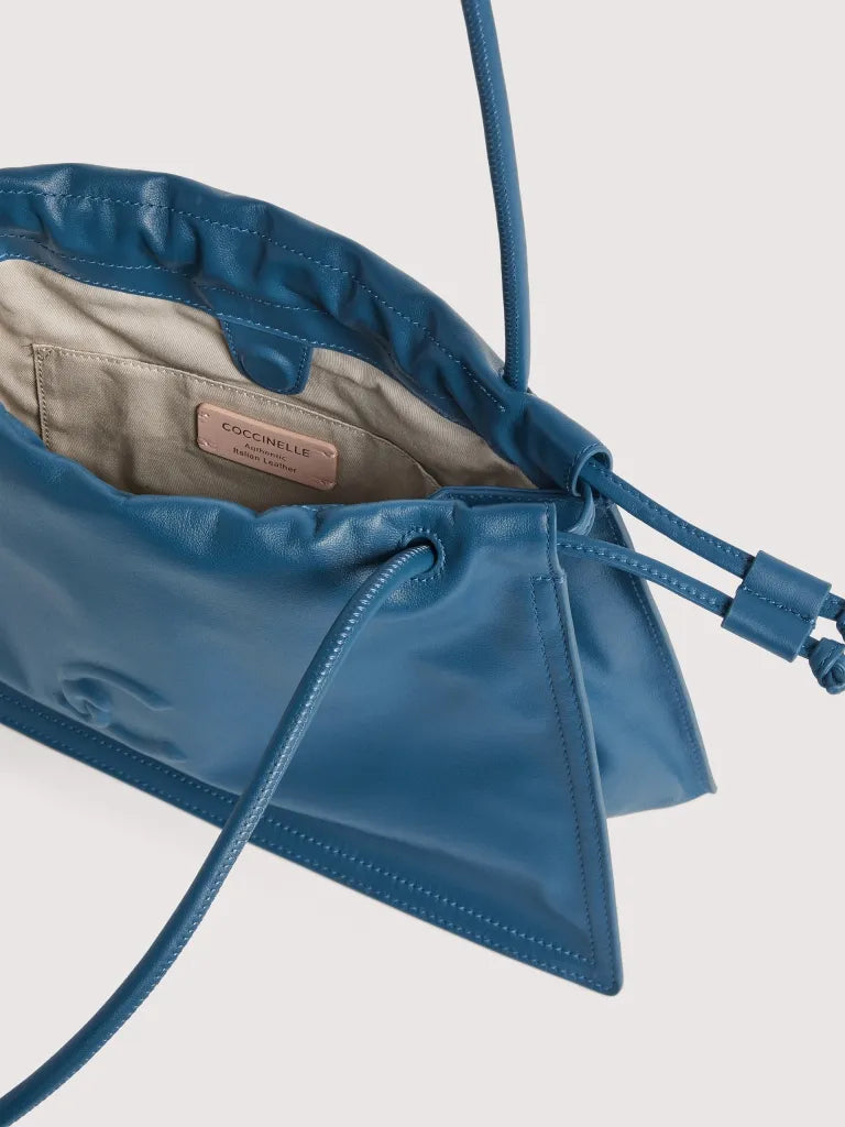 Made from smooth leather, the Coccinelle Dulse line highlights the elegance of the material with its distinctive soft pleats. A leather drawstring gathers the roomy silhouette of these bags, blending spaciousness with an elegant and romantic charm. The line is characterised by the new C-Me logo, created using a unique embossed technique on the leather. This model is made with smooth leather, tanned with special oils that make it soft to the touch. Despite its silky appearance, the leather is weather-resistant thanks to the use of resins that make the leather slightly waterproof while maintaining its natural appearance.