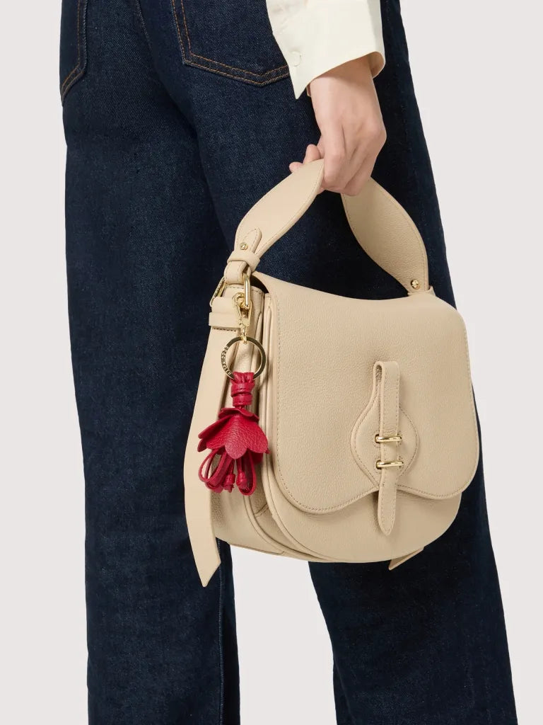 Coccinelle reinterprets the key ring with a new symbol of femininity. Designed to embellish bags and accessories, this flower key ring adds a delicate, distinctive touch to everyday style. This model is made with leather processed using specialised machines and then tumbled to maintain its softness. This is a very robust, easy to clean leather, making it ideal for everyday use.