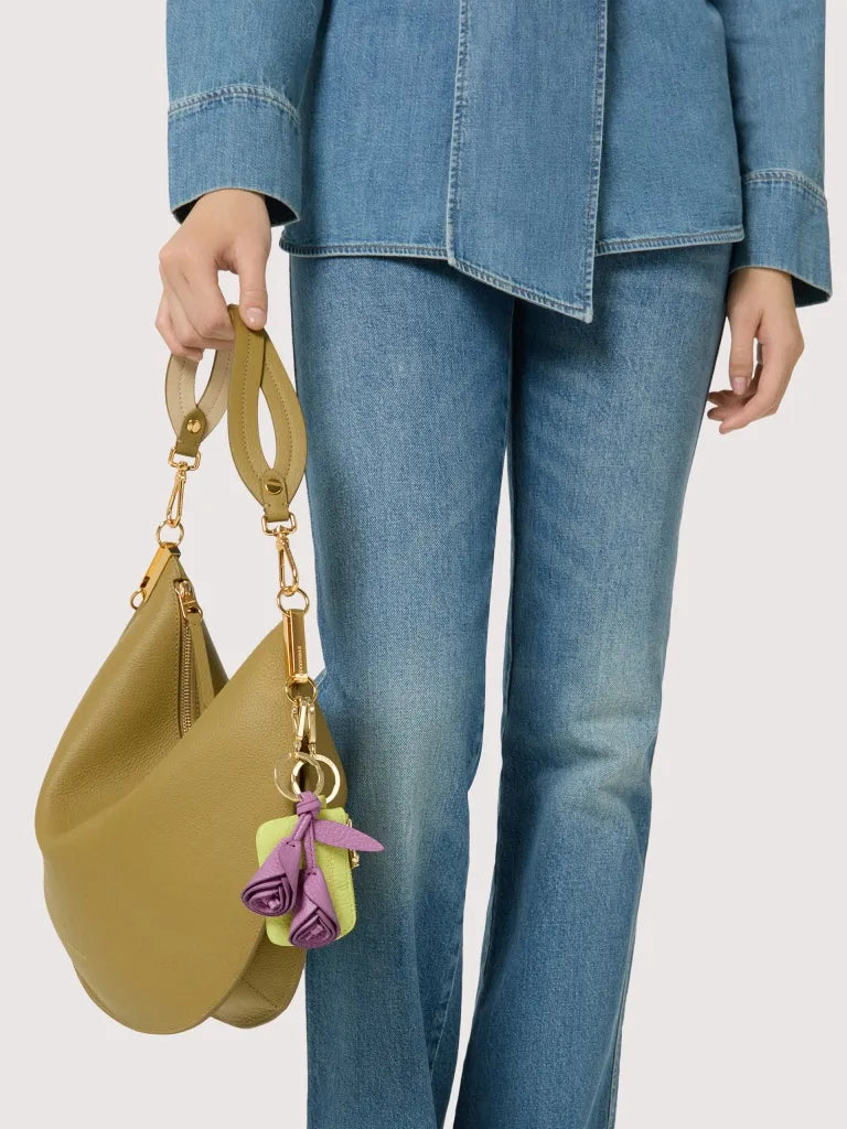 Coccinelle reinterprets the key ring with a new symbol of femininity. Designed to embellish bags and accessories, this flower key ring adds a delicate, distinctive touch to everyday style. This model is made with leather processed using specialised machines and then tumbled to maintain its softness. This is a very robust, easy to clean leather, making it ideal for everyday use.