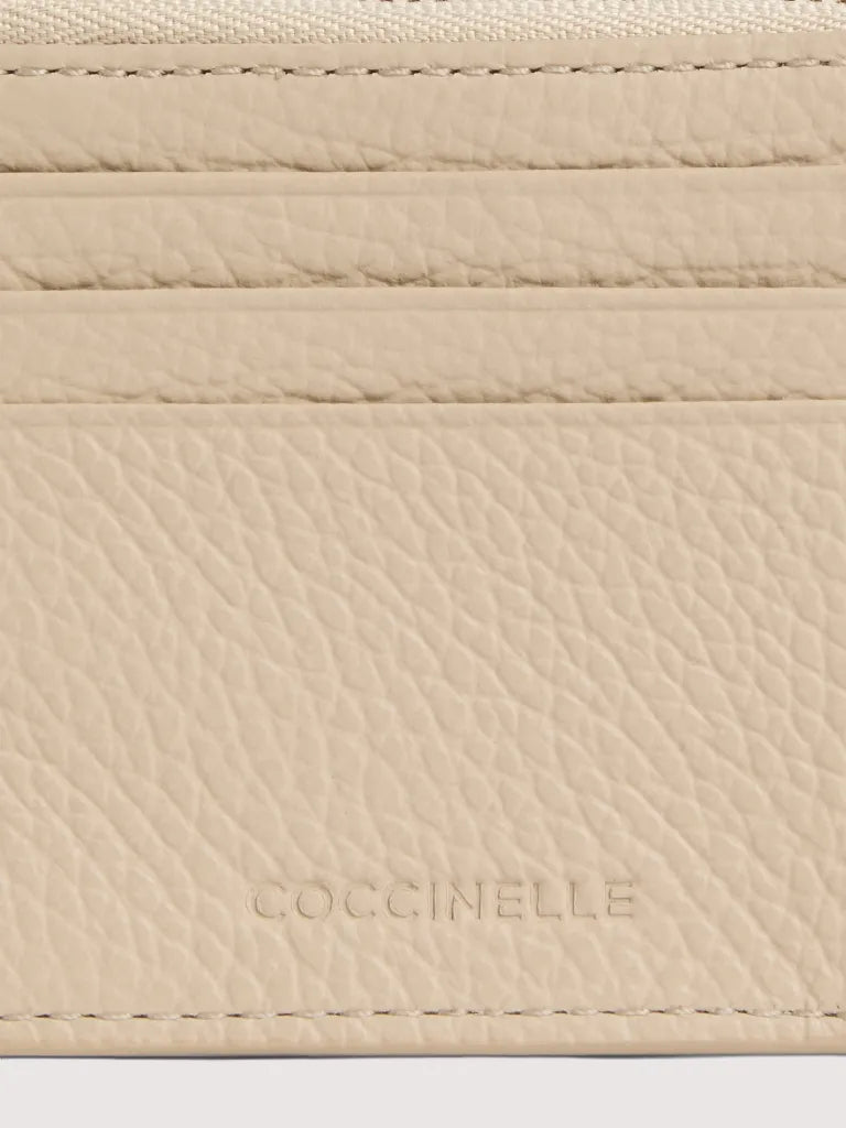 Leather card holder embellished with a small leather tassel. Small and compact, it is ideal for anyone who doesn't have a lot of space in their bag, yet doesn't want to go without an essential item.