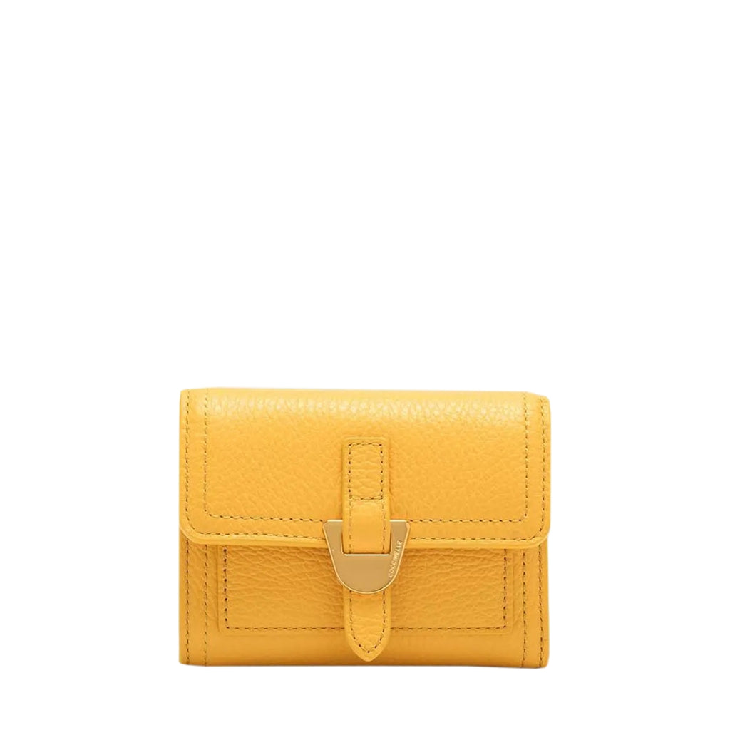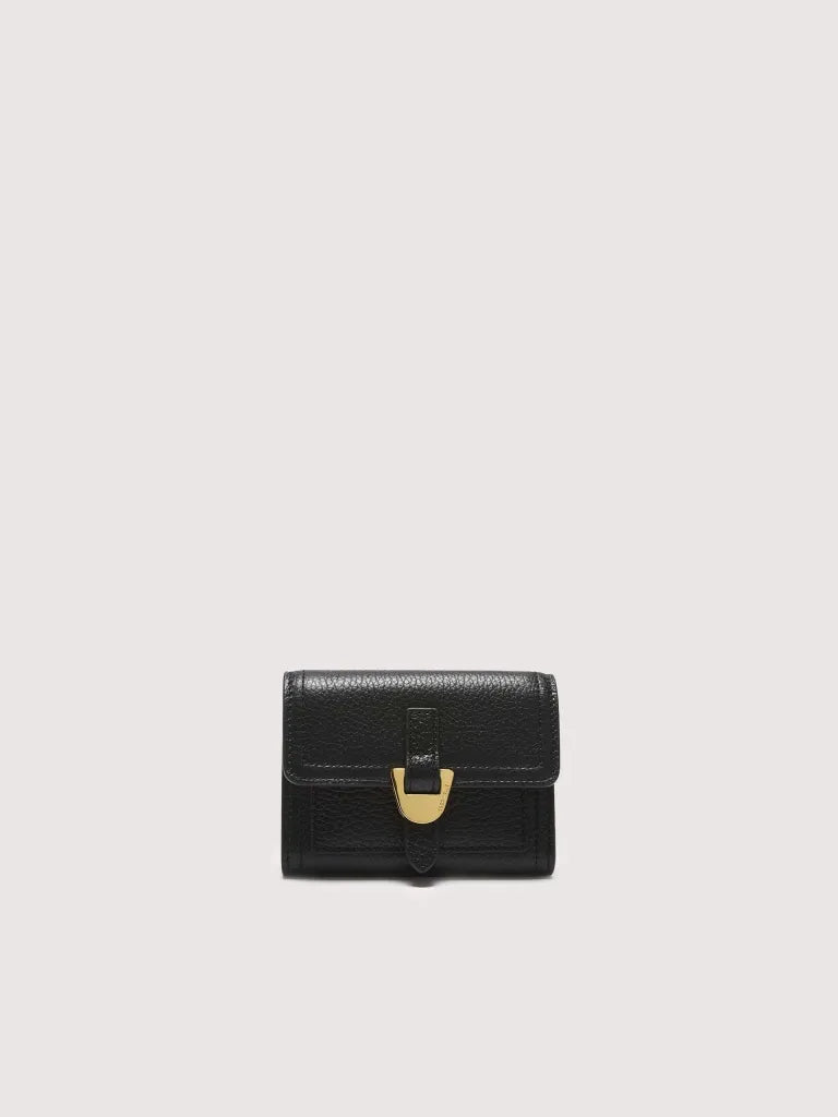This wallet with a flap from the Coccinelle Campus line is embellished by the metal plectrum-shaped detailing. Its space is well organised to tote all your necessary items neatly and carefully. This model is made with leather processed using specialised machines and then tumbled to maintain its softness. This is a very robust, easy to clean leather, making it ideal for everyday use.